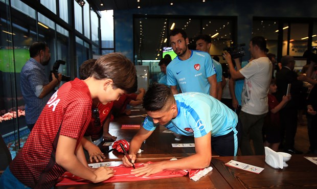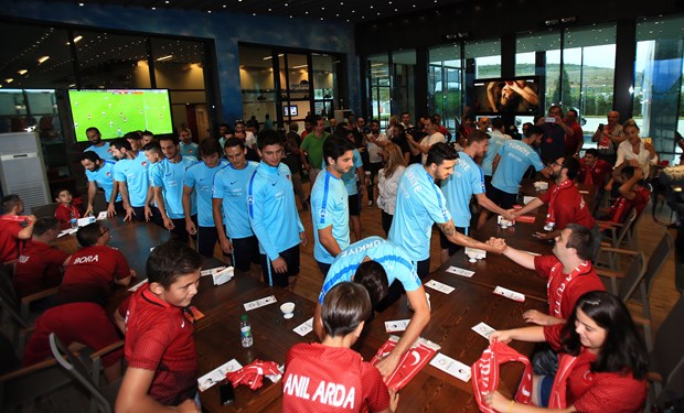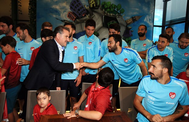 Özel öğrenciler, Riva’daki Hasan Doğan Milli Takımlar Kamp ve Eğitim Tesisleri’nde çalışmalarını sürdüren milli takım oyuncularını ziyaret etti. Gençlik ve Spor Bakanı Osman Aşkın Bak ve Türkiye Futbol Federasyonu (TFF) Başkanı Yıldırım Demirören ile federasyonun yönetim kurulu üyelerinin de hazır bulunduğu organizasyonda, çocuklar en büyük ilgiyi Arda Turan ile Cenk Tosun’a gösterdi.