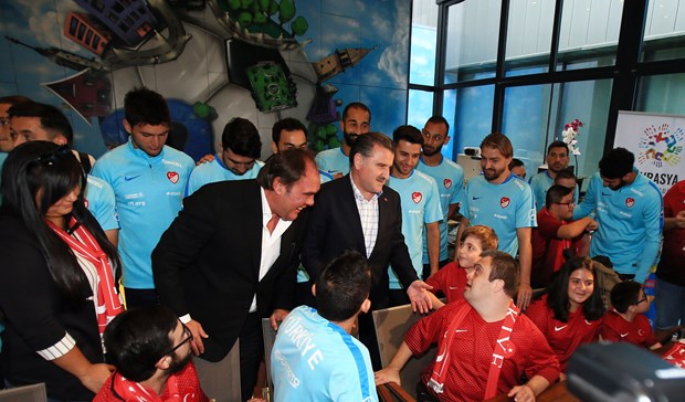 TFF Başkanı Demirören ise Süper Lig’de Galatasaray ile Demir Grup Sivasspor arasında yapılan maça alınmayan özel çocuklardan özür dileyerek, “Geçen hafta yaşanan durumu bugün telafi ettik, çok mutluyuz. Özel çocuklarımız milli takımla beraber. Galatasaray maçında yanlış anlaşılmadan sorun oldu. Allah kısmet ederse yorulmazlarsa Eskişehir’deki maça gelecekler. Yoksa ekimdeki karşılaşmada olacaklar. Amacımız onları özel yapmak. Sayın Cumhurbaşkanımız zaten özel çocuklarımıza önem gösteriyor. Bizim vazifemiz de onları en iyi şekilde ağırlamak, onlara hayatın mutlu yanlarını göstermek” ifadelerini kullandı.